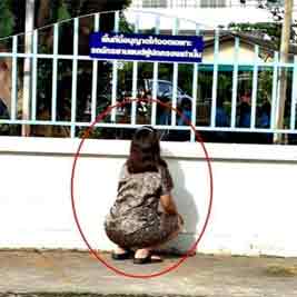 ▲這就是去幼兒園送娃的你--日前,一名泰國網友將一名關愛孩子的母親拍攝下來。該網友表示,這名母親送第一天來上幼兒園的孩子,雖然孩子跟著小伙伴和老師進了校園,但是這名媽媽不放心,偷偷的躲在墻邊觀察(圖)。該圖立刻引起送娃爸媽們的共鳴。(人民網)