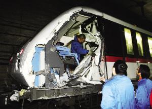 上海地鐵發(fā)生碰撞列車車頭被撞出大洞