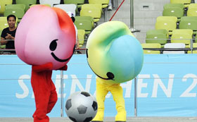 8月11日,2011深圳大運(yùn)會(huì)正式開(kāi)幕前一天,在沙灘排球賽場(chǎng),一群靚麗的沙排寶貝用她們的青春熱舞迎接大運(yùn)會(huì)的到來(lái)。圖為當(dāng)日下午沙排寶貝在賽場(chǎng)彩排熱身。中新網(wǎng)記者 金碩 攝