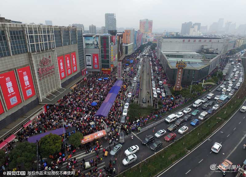 2016年01月30日,浙江省杭州市,年末大片“最后的甩賣”在四季青各大服裝市場上演,大批淘客趕來掃貨,四季青周邊的所有道路幾近癱瘓。