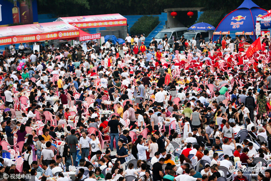 2016年6月13日,江蘇淮安,盱眙縣第十六屆國(guó)際龍蝦節(jié)萬人龍蝦宴在都梁廣場(chǎng)舉行,來自全國(guó)的超過三萬名食客現(xiàn)場(chǎng)品嘗龍蝦美味。據(jù)了解,盱眙縣共有76家龍蝦店現(xiàn)場(chǎng)提供超過30噸小龍蝦供食客享用。同時(shí)現(xiàn)場(chǎng)商家還提供線上銷售,市民可現(xiàn)場(chǎng)在天貓、淘寶、聚劃算等互聯(lián)網(wǎng)平臺(tái)下單購買。
