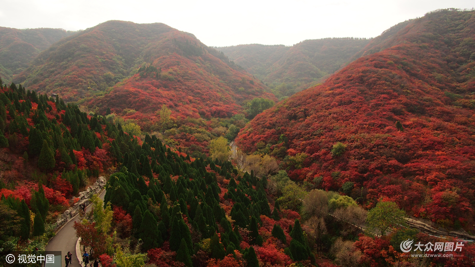 2016年10月27日,山東省濟南市南部山區(qū)紅葉谷景區(qū),大片紅葉變成了紅瑪瑙一般耀眼靚麗。據悉,紅葉谷景區(qū)中黃櫨樹木的面積和密度都很大,遠超北京香山,目前進入近年來最佳觀賞季節(jié),吸引了大批游覽者。 由于今年南山雨水足,紅葉生長更加茂密,跟往年相比今年的紅葉更通透。