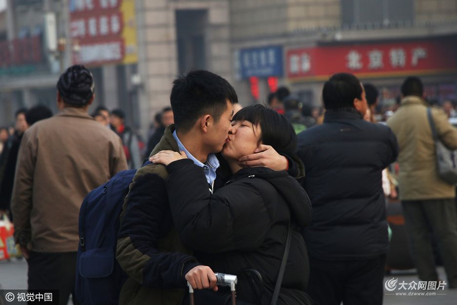 春運(yùn)臨近,辛苦了一年的農(nóng)民工們開始收拾起大包小包的行囊提前返鄉(xiāng)。對于年輕的農(nóng)民工情侶來說,過年回家則意味著分別,一對小情侶在北京站前廣場足足親吻了半小時還依依不舍。