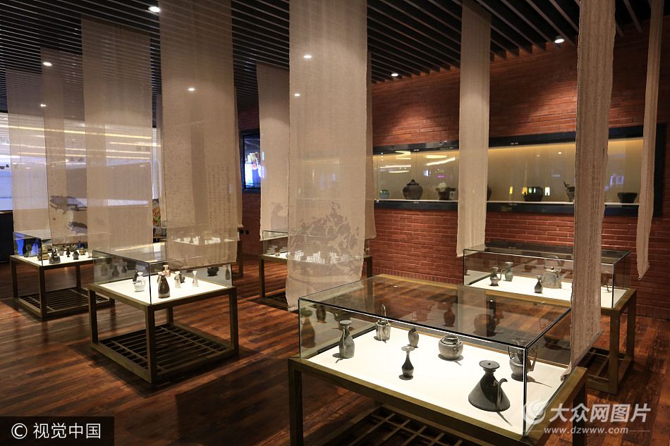 2017年8月7日,山東省青島市,一家餐廳在門口舉辦古董展覽,儼然變成博物館餐廳。
