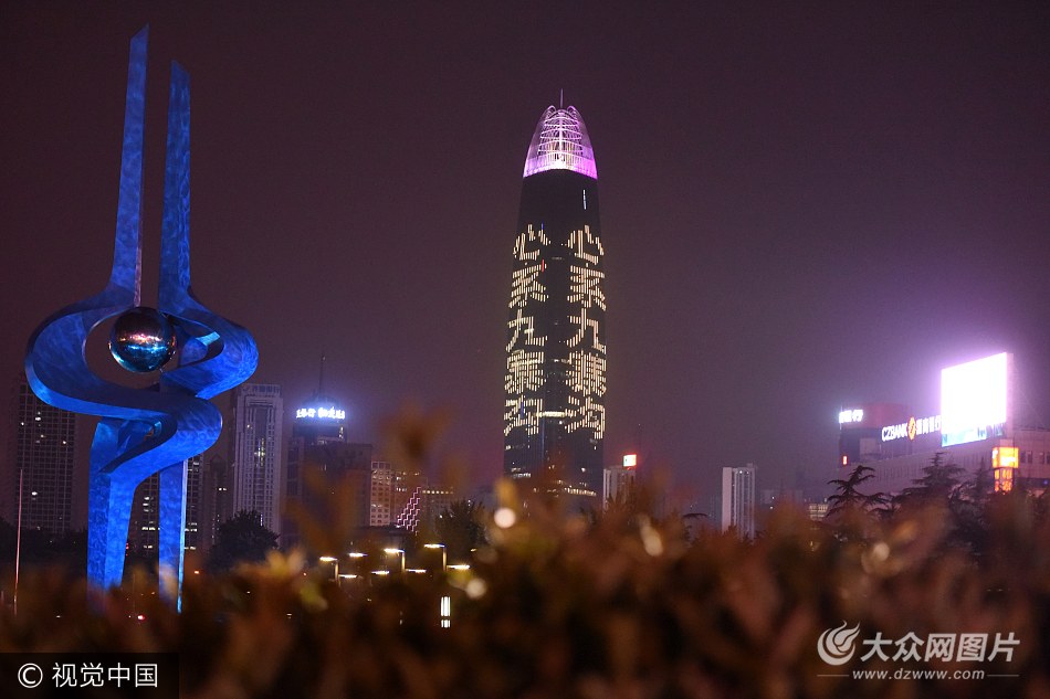 2017年8月9日,濟南第一高樓點亮“心系九寨溝”“為震區祈福”字樣,為四川阿壩州九寨溝地震災區祈福。