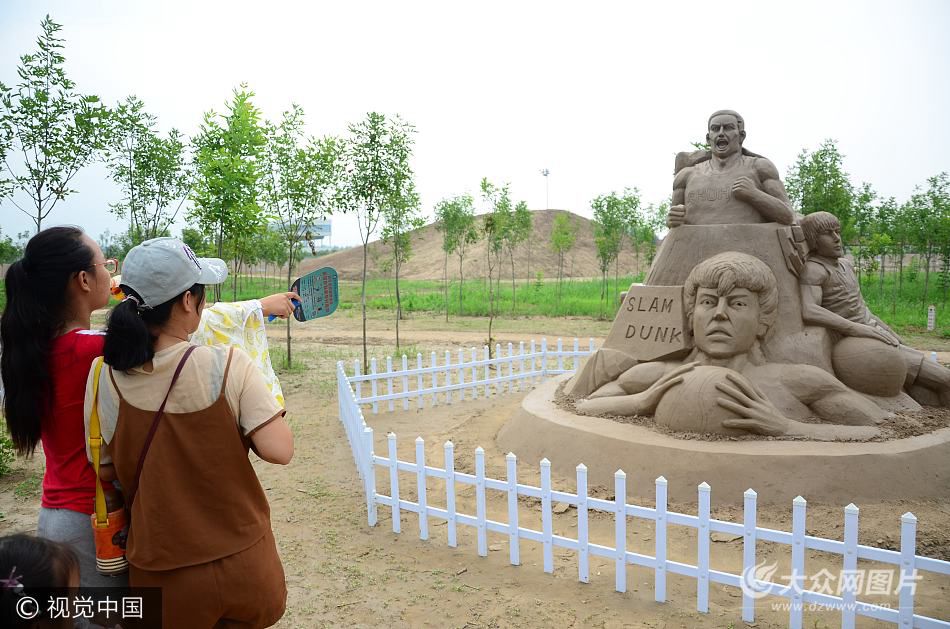 2017年8月10日,山東濱州市黃河沙雕主題公園驚艷亮相,公園占地100余畝,29個巨型沙雕,消耗黃河泥沙近萬噸。一車一車的黃河泥沙經過運輸、壓制、雕刻、涂膠等多項步驟,變身成眼前宏偉逼真的金字塔、自由女神像、雙子塔等著名建筑,蜘蛛俠、阿凡達、美人魚、米老鼠等卡通形象也一一亮相,吸引了眾多市民前來參觀。