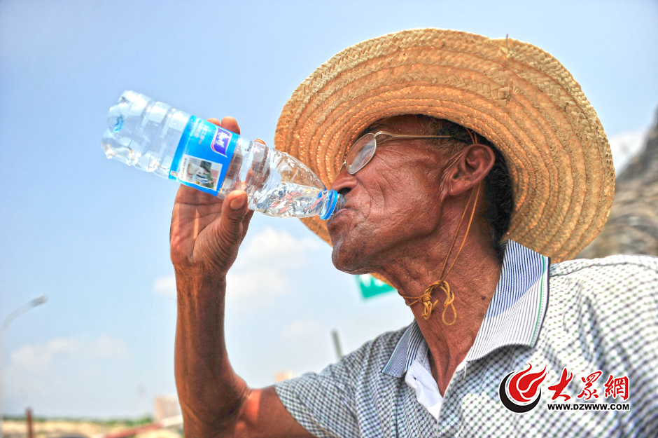 8月11日,濟(jì)南市氣象臺(tái)繼續(xù)發(fā)布高溫黃色預(yù)警,最高氣溫35℃左右,火辣辣的驕陽(yáng)將人們出行的意愿降到了最低點(diǎn)。在濟(jì)南鳳凰山立交橋施工現(xiàn)場(chǎng),年近60歲的工人馬大爺全身被汗水濕透,干了又濕,濕了又干,臉上的汗水不斷流淌著。(大眾網(wǎng)-山東24小時(shí)客戶端記者 王長(zhǎng)坤 攝)