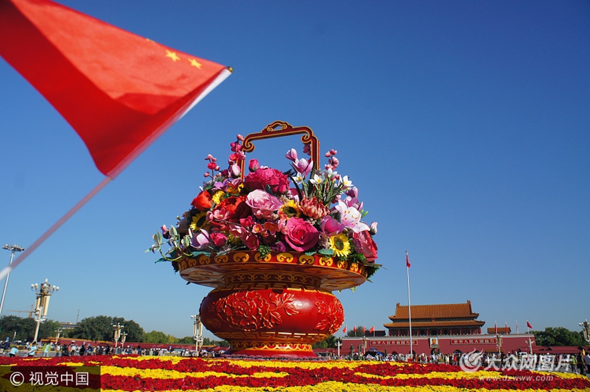 2015年09月25日,北京,天安門廣場中心花壇正式搭建完成。