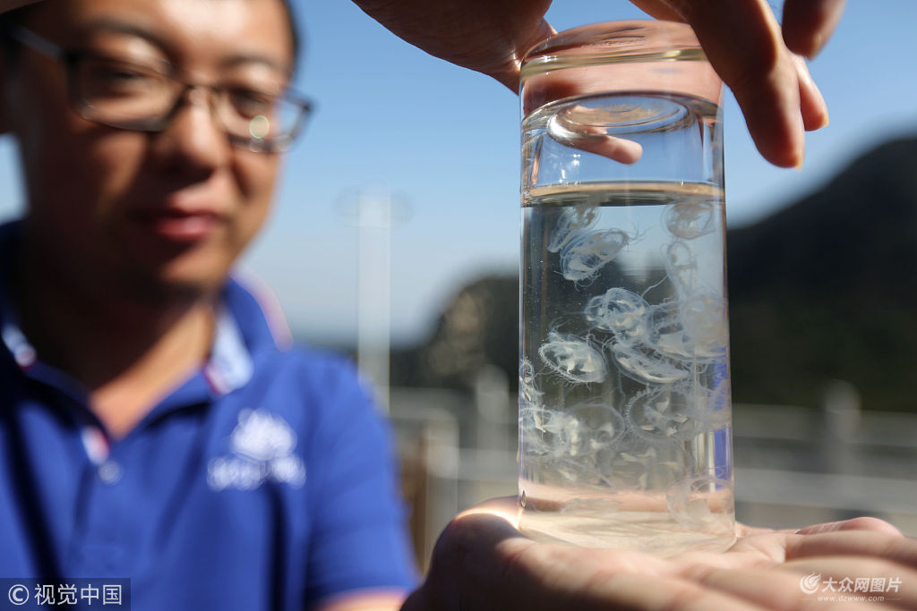2018年9月27日,山東臨沂,海拔800米沂蒙山云蒙景區人工水池內的桃花水母。