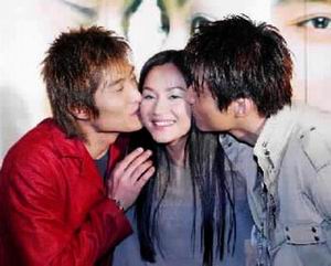 由胡兵首次擔(dān)任制作人的電視劇《真情告別》將在臺灣播出,在昨天舉行的試映會上,瞿穎、胡東也盛裝出席。三位模特兒同臺一亮相,馬上就讓鎂光燈此起彼落,而胡兵、胡東兩兄弟也熱情地雙雙給了瞿穎深深的一吻,讓瞿穎笑得很開心,連攝影記者要求現(xiàn)場跟胡兵親嘴,都二話不說地深情演出。