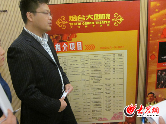 煙臺大劇院劉經理在給記者講解公益文化項目推介會