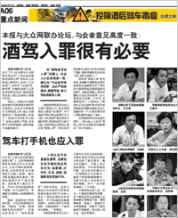在"酒駕是否該入罪"問題上,與會(huì)人士態(tài)度高度一致,都認(rèn)為"不應(yīng)該再保持沉默",應(yīng)從嚴(yán)懲戒酒后、醉酒駕駛,修訂刑法將酒駕入罪。[詳細(xì)]