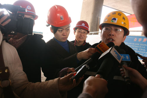 山東橋檢中心燕山立交抬升監控負責人宣布大橋抬升數據合格,抬升到位。
