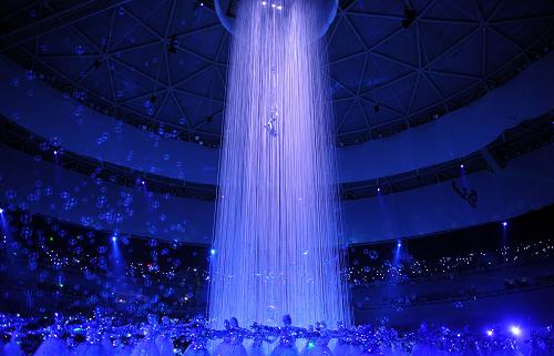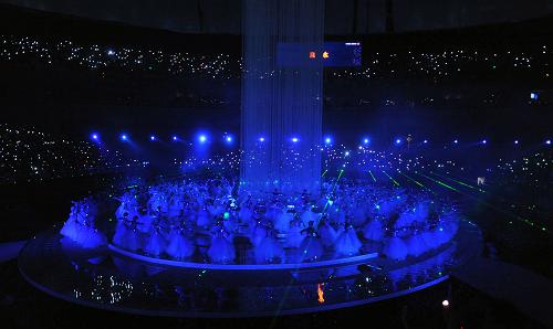 10月28日,第十一屆全國運動會閉幕式在山東濟南舉行。這是閉幕式上的舞蹈表演《泉水》。新華社記者李鋼攝