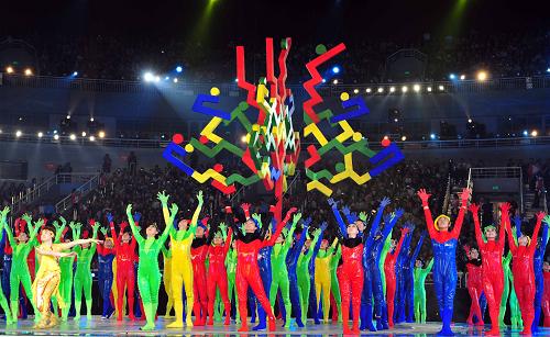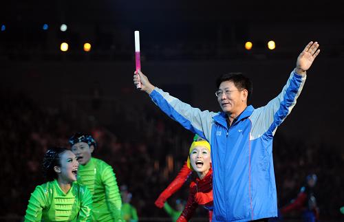 第一屆全運會游泳冠軍穆祥雄在閉幕式上“傳遞火炬”。