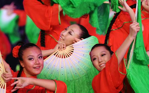 10月28日,第十一屆全國運動會閉幕式在山東濟南舉行。這是閉幕式上的舞蹈表演《飛騰》。新華社記者范長國攝
