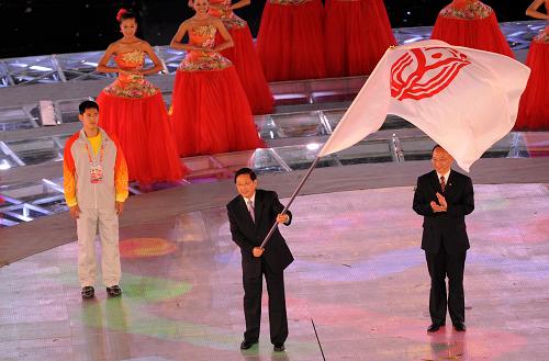遼寧省省長陳政高手舉中華人民共和國運動會會旗。