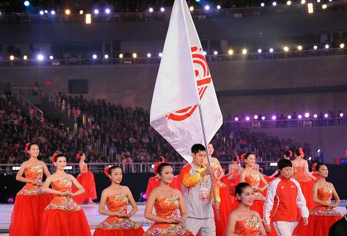遼寧省運動員代表張慶鵬手舉中華人民共和國運動會會旗。