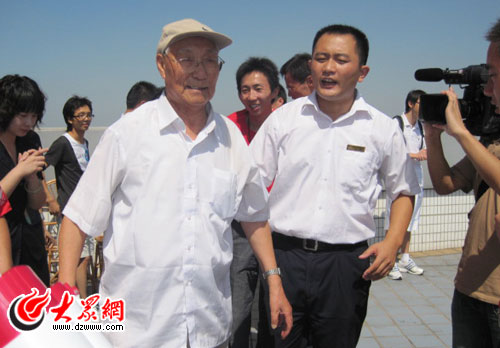在眾人敬佩的目光中,82歲的王大爺征服了這座“濟南第一高樓”,順利爬上了49層高樓。