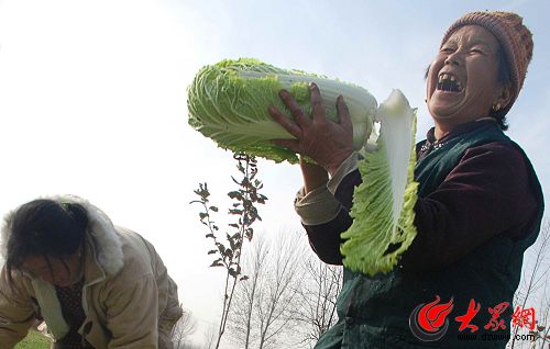 看到自己的白菜在地頭就被搶購菜農(nóng)心里美滋滋。齊魯晚報(bào)記者 郭建政 攝