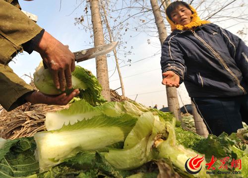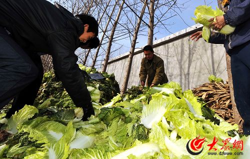 不少新鮮的菜葉也被菜農(nóng)忍痛剝掉。齊魯晚報(bào)記者 郭建政 攝
