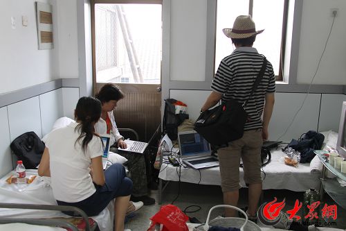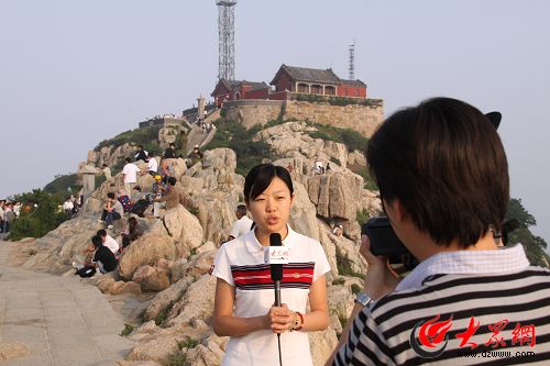 記者和圣火采集現(xiàn)場(chǎng)的工人閑聊