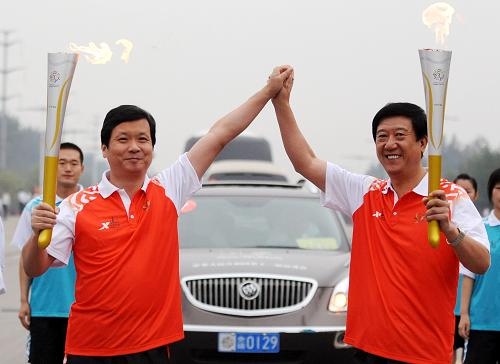 10月8日,十一運會志愿者形象大使徐本禹在傳遞火炬。當日,第十一屆全國運動會火炬?zhèn)鬟f活動在山東聊城進行。