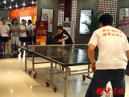 主辦方大眾網(wǎng)工作人員也早早趕到比賽現(xiàn)場,在路勁地產(chǎn)工作人員拿來參賽人員的簽到名單后,又一一比對并對參賽人員進(jìn)行分組。上午9點(diǎn)左右,山東省省委宣傳部辦公室主任紀(jì)濤宣布比賽正式開始, 主辦方邀請的裁判人員也各就各位。夏日里,選手們開始在“乒壇”揮灑汗水。