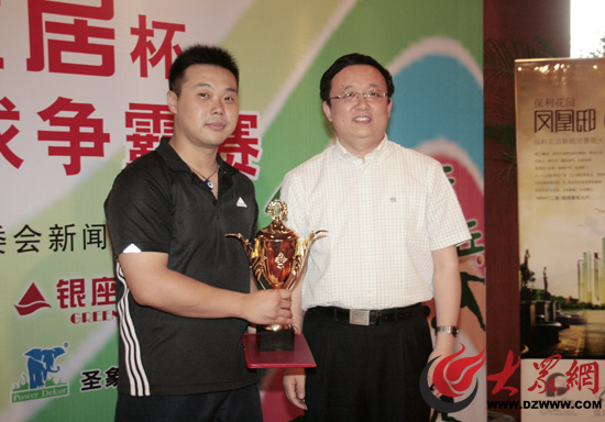 大眾報業集團副總編輯魏武為冠軍隊—山東省農村信用社代表隊頒發證書和獎杯