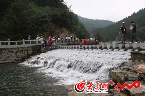 22日下午,網絡媒體山東行一行近百人抵達泰安市,在這里參觀采訪的首站就是桃花峪景區的彩石溪。