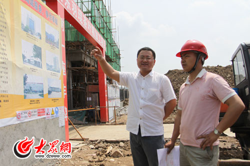 羽琨茶業(yè)總經(jīng)理張偉(白衣)與施工方交流