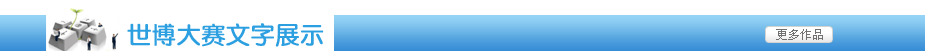 作品要求: 活動主要設文字作品、攝影作品、視頻作品、FLASH作品和手工藝 實物作品等五項。文字作品一般不超過1500字,圖片單幅或一組不超過五張,視 頻作品和FLASH作品長度在3分鐘左右,手工藝紀念品需上傳實物圖片并說明創意 理念、材質及主要工藝和聯系方式。作品內容要求高揚主旋律,唱響愛國曲,記 錄世博前夕,迎接世博的點點滴滴;世博舉行過程中的精彩與難忘;世博后的暢 想和希望。記事、寫人、抒情,以小見大,見微知著。