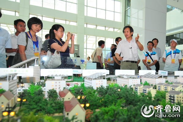 皇明太陽能集團董事長黃鳴向記者介紹中國太陽谷的建設情況(攝影 張曉博)