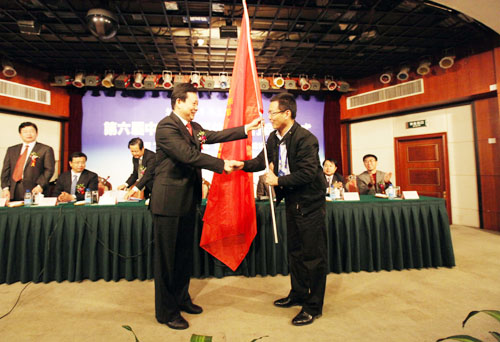 “亞太森博杯”聚焦山東半島藍色經濟區——第六屆中國網絡媒體山東行考察采訪活動22日上午9時在山東新聞大廈啟動。山東省委常委、宣傳部長李群為“第六屆網絡媒體山東行”采訪團授旗,采訪團代表人民網記者張巖接旗。