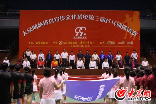 大眾網濟南6月12日訊 (記者 吳哲 曹亮 韋輝 實習生 宋瑜)由省委宣傳部主辦,大眾報業集團(大眾日報社)承辦的“大眾網杯”省直宣傳文化系統第三屆乒乓球邀請賽,今天在山東省體育中心體育館拉開戰幕。來自省直文化宣傳系統12個單位的150多名運動員將同場競技,角逐團體、女單、男單甲、乙、丙共五個單項的冠軍榮耀。