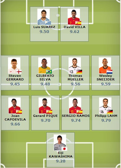 南非世界杯已經(jīng)只剩下4場比賽,北京時(shí)間7月5日,國際足聯(lián)官方公布了一份最佳11人名單。比較令人意外的是,杰拉德、吉爾伯托-席爾瓦、川島永嗣三名無緣半決賽的球員也入選了這個(gè)陣容。