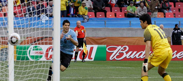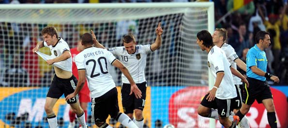 北京時間6月23日22時(南非當?shù)貢r間16時),世界杯C組末輪在比勒陀利亞洛夫托斯球場展開1場較量,美國1比0擊敗阿爾及利亞,憑借進球數(shù)優(yōu)勢力壓英格蘭奪得頭名。開場不久,阿爾及利亞前鋒杰布爾射中橫梁。此后美國中場登普西射進一球,但被可疑地吹為越位。下半場,登普西射中門柱,多諾萬補時階段上演絕殺,頻臨淘汰的美國憑此球躍居小組首位。此后阿爾及利亞隊長葉海亞累計2張黃牌被罰下。圖為本場比賽精彩瞬間。