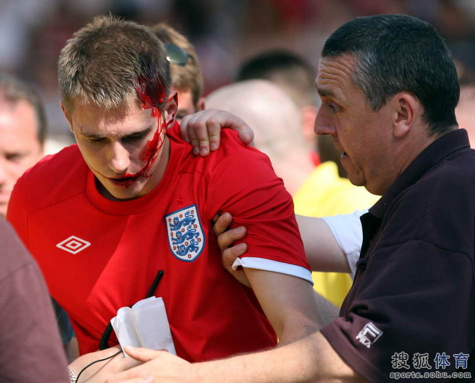 英國球迷頭部中招...