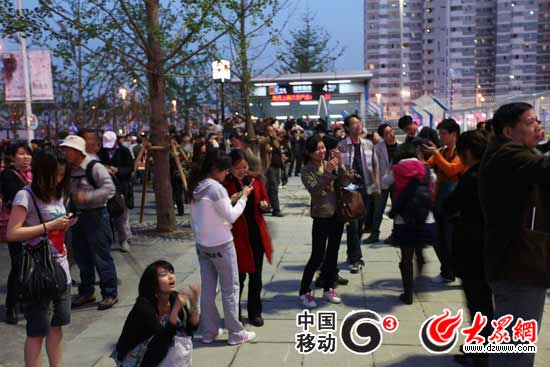 大眾網-移動G3上海4月30日聯合報道(特派記者 馮煒程 吳哲)晚上7點左右,大眾網記者在世博園6號門門口看到,大批游客正在此聚集,因為6號門正對中國國家館,所以很多攝影愛好者早早準備好設備拍攝,記者注意到,此處的地鐵出入口幾乎一直在有游客走出,來自浙江的游客王輝告訴記者,他想早早看一下世博館,明天開幕后也會第一時間進園。