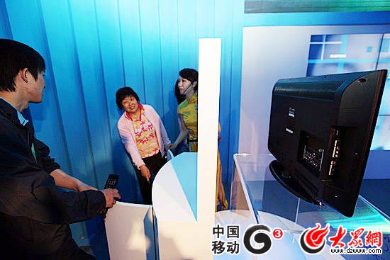山東館最大亮點(diǎn)在未來廳,未來廳也吸引了最多的參觀者。在全球首臺無尾電視機(jī)跟前,眾多參觀者湊到電視后面,尋找電視如何供電,如何傳輸信號的答案。