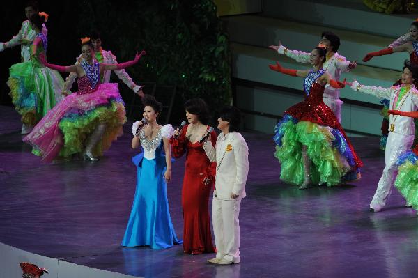 4月30日,中國2010年上海世博會開幕式文藝表演在上海世博園世博文化中心舉行。這是演員們在演唱《相約上海》。 新華社記者陳樹根攝