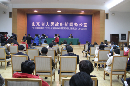 山東省人民政府新聞辦公室副主任、山東省新聞發布工作協調小組辦公室主任孔繁軻主持發布會