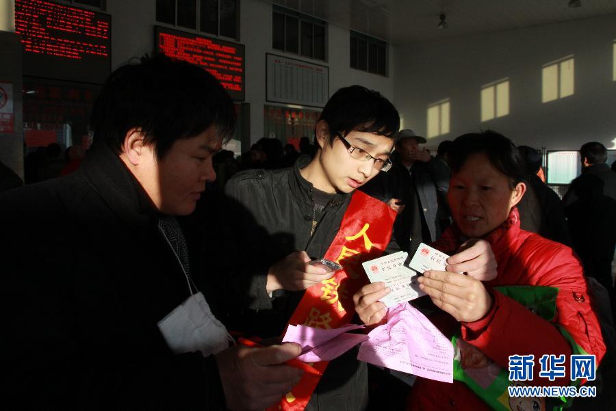 1月11日,在威;疖囌荆瑥埰皆诜掂l(xiāng)前幫助人們電話訂票。春運(yùn)期間,在山東威海火車站,有一名大學(xué)生免費(fèi)為人們電話訂票的事跡溫暖了很多人,人們親切地稱他為“訂票哥”。這名大學(xué)生名叫張平,山西朔州人,現(xiàn)在哈爾濱工業(yè)大學(xué)威海校區(qū)讀大四。2011年12月31日晚,張平通過電話訂票系統(tǒng)訂到了回家的火車票,體會到電話訂票的便捷。但同時他也發(fā)現(xiàn),先進(jìn)的訂票方式由于宣傳不到位,讓一些上歲數(shù)的老人、文化程度不高的農(nóng)民工或身有殘疾的人們無所適從。為此,張平萌生了免費(fèi)幫助人們訂票的想法。新年伊始,張平的身影就出現(xiàn)在火車站,通過電話幫助人們訂票。幾天下來,張平成功訂票400多張,許多路途遙遠(yuǎn)的旅客在他的熱心幫助下,順利踏上回家的旅途。 1月11日是張平回家的日期,在上車之前的時間里,他依然在威;疖囌編腿擞喥,用自己的愛心,溫暖他人回家的路…… 新華社發(fā)(于啟波攝)