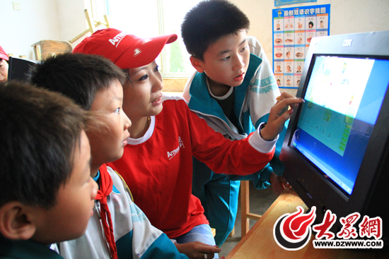 臨沂平邑縣卞橋鎮東家莊小學愛心捐助活動志愿者教學生操作電腦