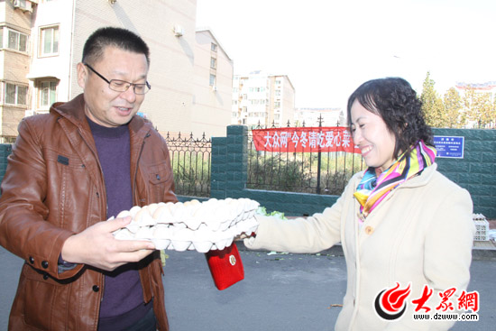劉殿杰告訴記者,他們公司熱衷于公益愛心事業,不論是汶川地震還是前年濟南的愛心菜活動,公司都伸出了援手。這次購買的“愛心菜”,兩人只用車拉走了1500斤,剩下的7000斤打算委托大眾網送給有需要的人。“錢不在多少,重要的就是能幫助到他們。俗話說得好,一方有難,八方支援嘛!”劉殿杰笑著說。“非常感謝大眾網創造了這樣一次機會,能讓溫暖傳遞。”劉殿杰說。“說多少都匯成一句話:‘大愛無疆,家比天大’。就像有首歌唱的,每個人都伸出溫暖的手,世界就會多一點愛,我們也會繼續傳遞愛心的腳步。”