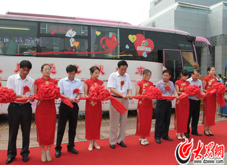 山東省血液中心黨委書記龍浩、山東省血液中心副主任朱永寶、山東大眾傳媒股份有限公司董事長、總經理林忠禮、山東大眾傳媒股份有限公司總經理助理、市場運營中心主任陳月軍、泉城廣場管理處主任魏濤共同為“大眾網愛心獻血車”剪彩。