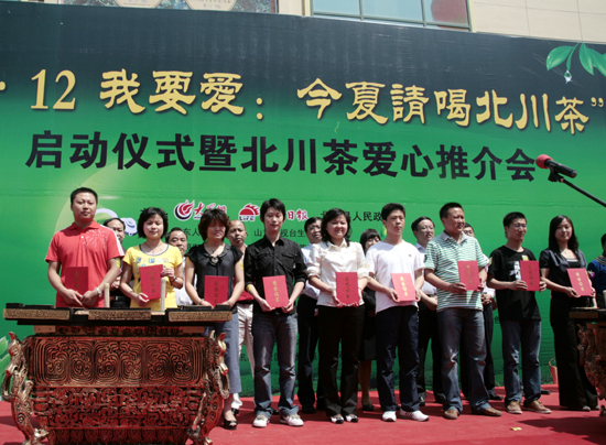 大眾網濟南5月5日訊 由大眾網、生活日報、北川羌族自治縣人民政府等單位主辦的“5.12,我要愛——今夏請喝北川茶”啟動儀式暨北川茶愛心推介會今天在濟南七里堡茶城舉行。圣象集團山東公司特別派出代表參加啟動儀式,并現場義購100余袋北川愛心茶,為北川重建獻出一份愛心。據悉,此次用來購買北川愛心茶善款都是圣象集團山東公司員工在看到本網報道后自發捐贈出來的,而這也是繼去年“5.12”圣象山東公司捐出3.6萬善款后,“圣象人”再次向北川同胞伸出的援助之手。
