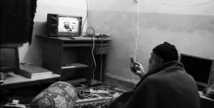 另一段錄像中,本·拉丹胡須花白,身披一條毯子,躬身而坐,觀看電視中關于自己的畫面,內容看起來是衛星電視直播節目。他手握遙控器,不時更換頻道。