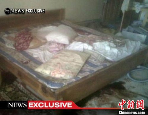 5月2日,美國有線電視新聞網播出畫面,顯示了本拉登被擊斃時其藏身住所內部情況。該處住所位于巴基斯坦伊斯蘭堡附近的阿伯塔巴德市。