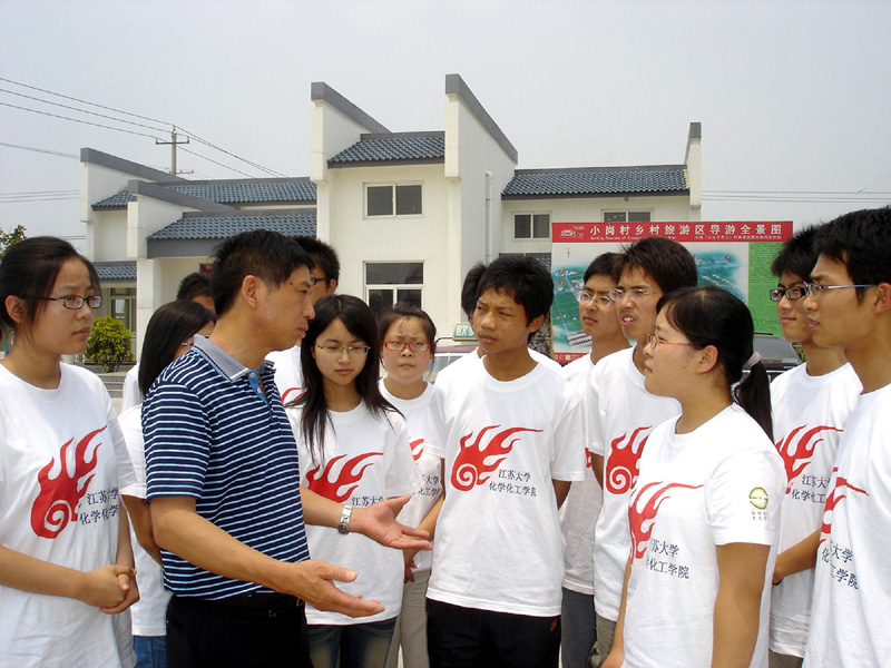 這是2009年,沈浩(前左二)與在小崗村進行社會實踐的大學生交談。新華社發
